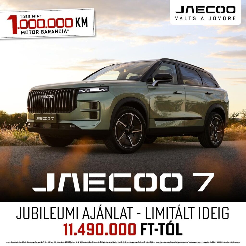 Most minden új JAECOO 7 modell különleges kedvezménnyel, már 11.490.000 Ft-tól a Tiéd lehet! Ráadásul több mint 1.000.000 km motorgaranciával!