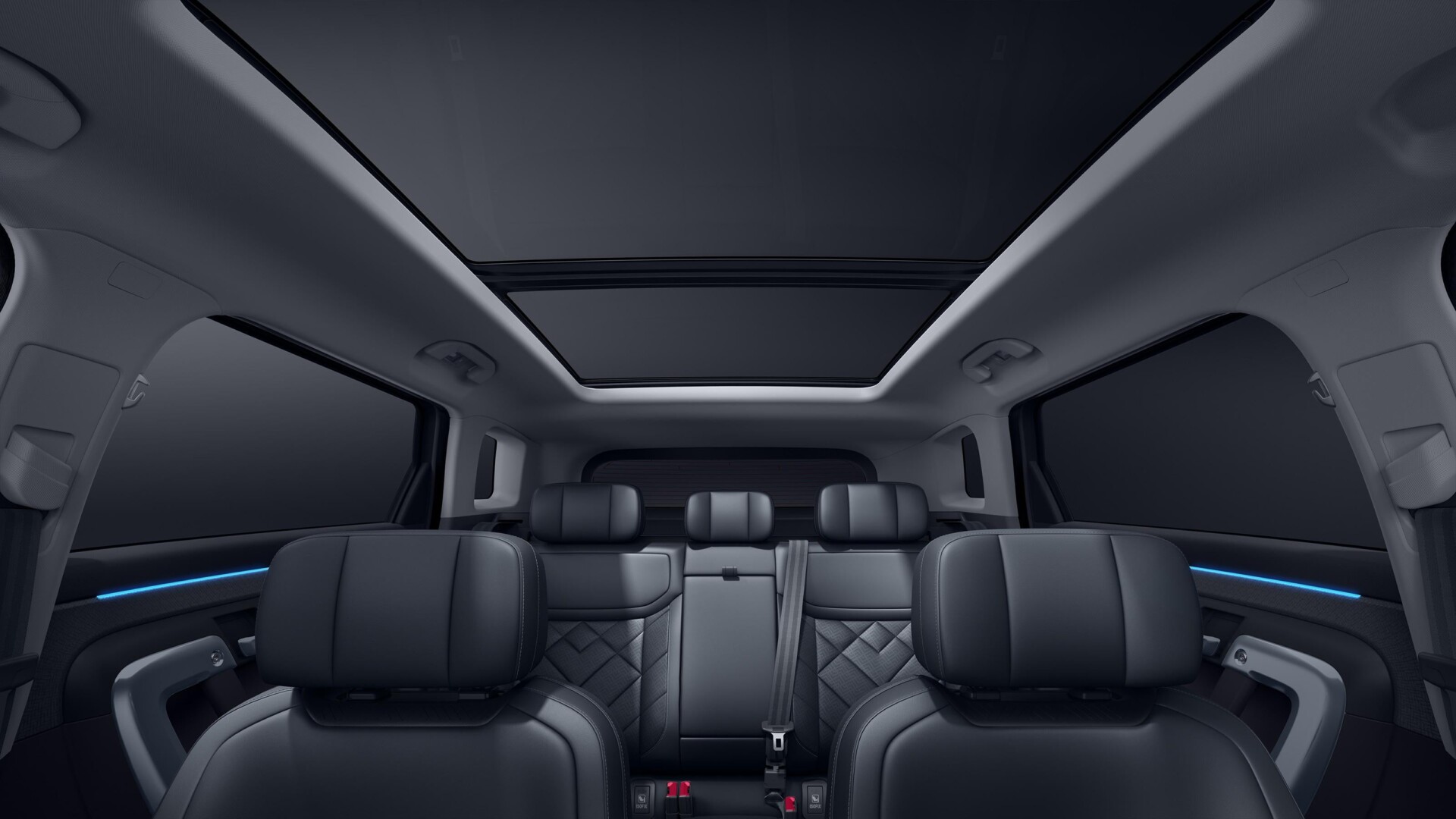 Az EX+ modellekhez elérhető panoráma tető természetes fénnyel árasztja el az utasteret, és vizuálisan még tágasabbá teszi az amúgy is nagyvonalú belső teret, növelve ezzel a vezető és az utasok kényelmét.