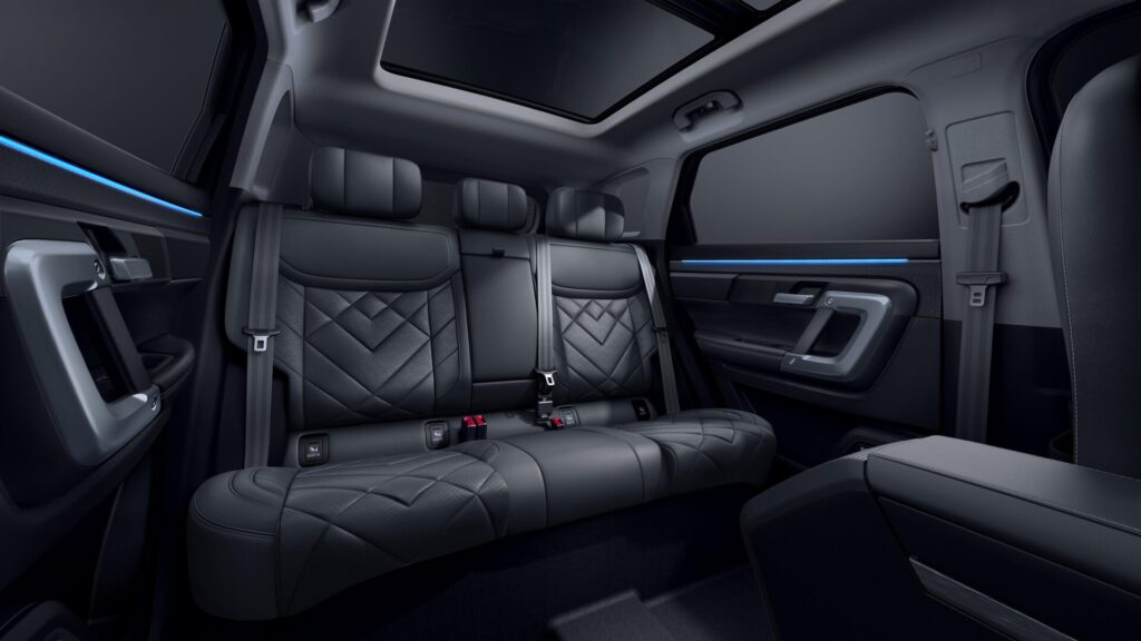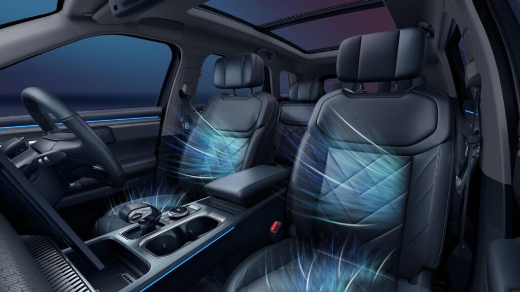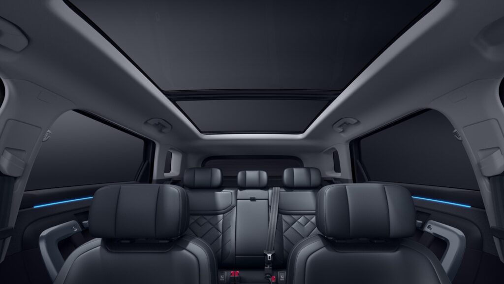 A jármű 1,1 m²-es panoráma napfénytetővel rendelkezik, amely tágasabbá és világosabbá teszi a belső teret. Az innovatív, teljes testet támogató ülések kiváló minőségű anyagokból készültek, és hat irányban elektromosan állíthatók, valamint négy irányban állítható deréktámasszal rendelkeznek. Az ülések fűtési és szellőztetési funkcióval is fel vannak szerelve a további kényelem érdekében.